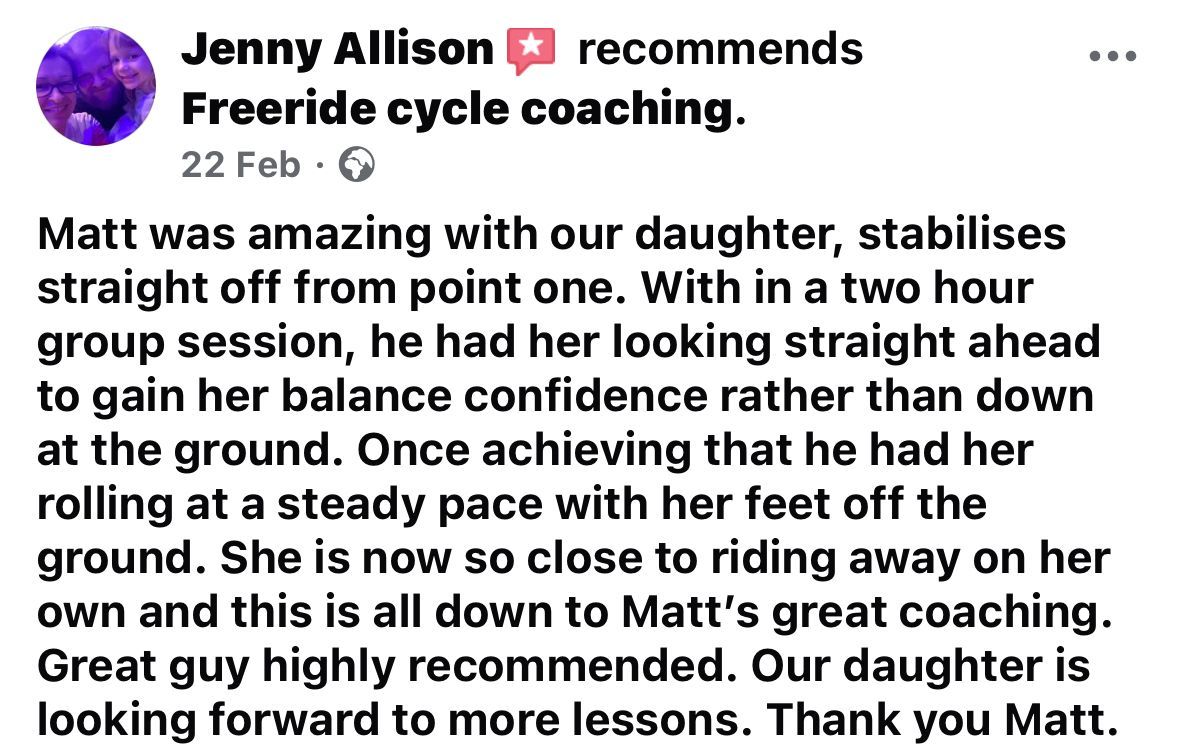 We can offer 1-2-1 sessions at the abbey to give your chid that extra push and confidence on the bike please message us to talk and make a plan for this.